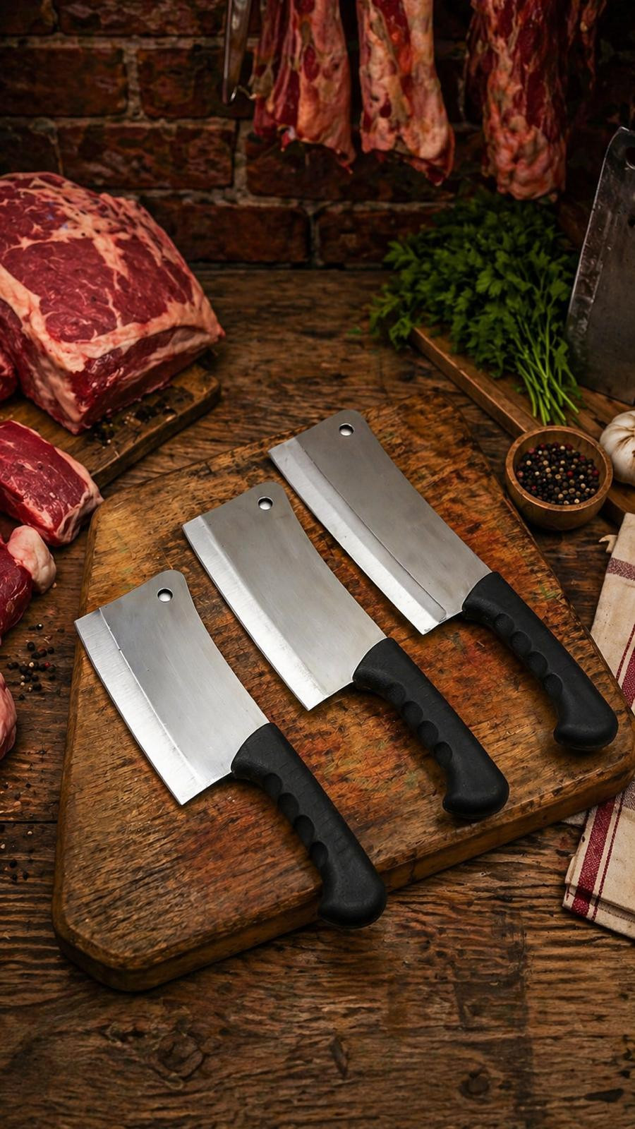 Geleneksel mutfakların vazgeçilmezi olan kasap satırı, et ve kemik parçalama işlemlerinde maksimum dayanıklılık ve güven sunar. Kalın ve sağlam yapısı sayesinde darbeye karşı dirençlidir, uzun süreli kullanımlarda formunu korur.