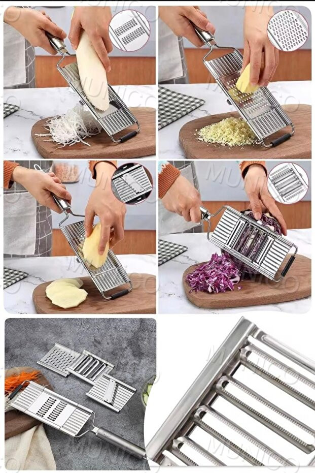 Paslanmaz çelik bıçakları uzun ömürlü kullanım sağlarken, ergonomik sapı güvenli ve rahat bir tutuş sunar. Kaymaz tabanı sayesinde kullanım sırasında stabil durur ve güvenli bir deneyim sağlar. Hem ev hem profesyonel mutfaklar için idealdir.